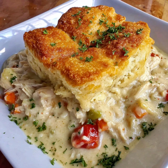 Bake in the preheated oven for 30-35 minutes, or until the biscuits are golden brown and the filling is bubbly.