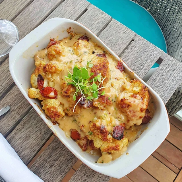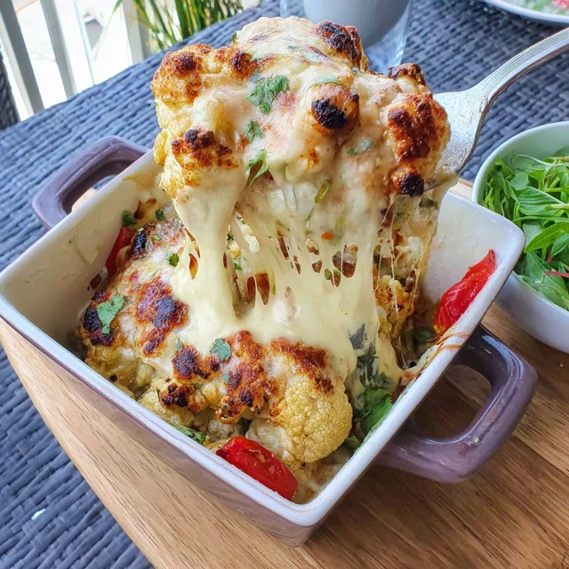 This Roasted Cauliflower Bake with Miso Cheese Sauce is a delightful dish that turns humble cauliflower into a cheesy comfort food sensation!