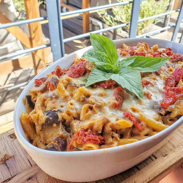 Indulge in the vibrant flavours of Sicily with this delicious Aubergine and Sun-Dried Tomato Pasta Bake that’s sure to impress your family and friends!